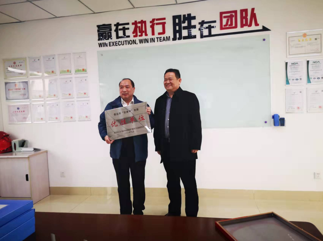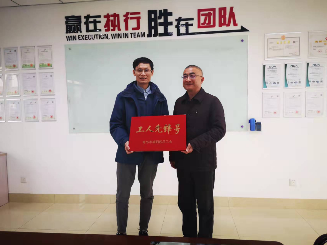 會議結(jié)束后,市工會宋其富部長及區(qū)工會劉兵世主席為我公司頒發(fā)“2021年度青島市安康杯優(yōu)勝單位”“工人先鋒號”獎牌。