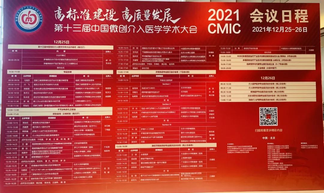 2021年12月25日,由國(guó)家腫瘤微創(chuàng)聯(lián)盟等單位主辦的第十三屆中國(guó)微創(chuàng)介入醫(yī)學(xué)學(xué)術(shù)大會(huì)(2021CMIC)于北京隆重召開(kāi)。