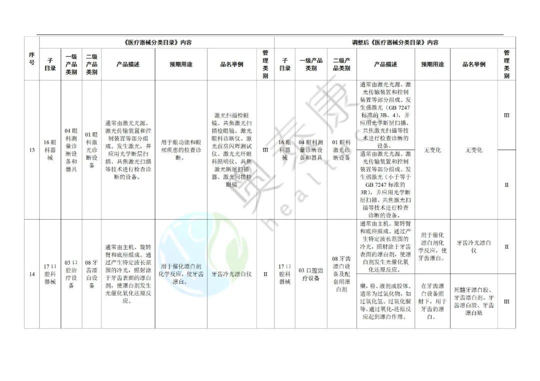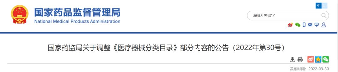 為進(jìn)一步深化醫(yī)療器械審評審批制度改革,依據(jù)醫(yī)療器械產(chǎn)業(yè)發(fā)展和監(jiān)管工作實際,按照《醫(yī)療器械監(jiān)督管理條例》《醫(yī)療器械分類目錄動態(tài)調(diào)整工作程序》有關(guān)要求,國家藥監(jiān)局決定對《醫(yī)療器械分類目錄》部分內(nèi)容進(jìn)行調(diào)整?,F(xiàn)將有關(guān)事項公告如下: