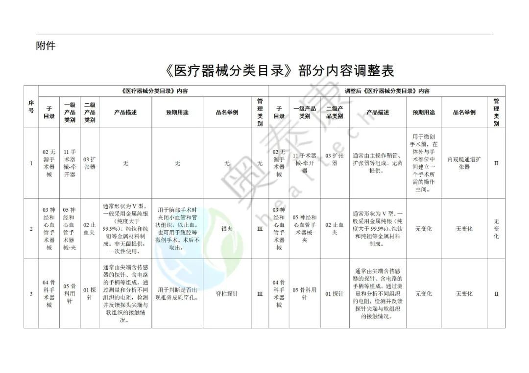 附件:《醫(yī)療器械分類目錄》部分內(nèi)容調(diào)整表