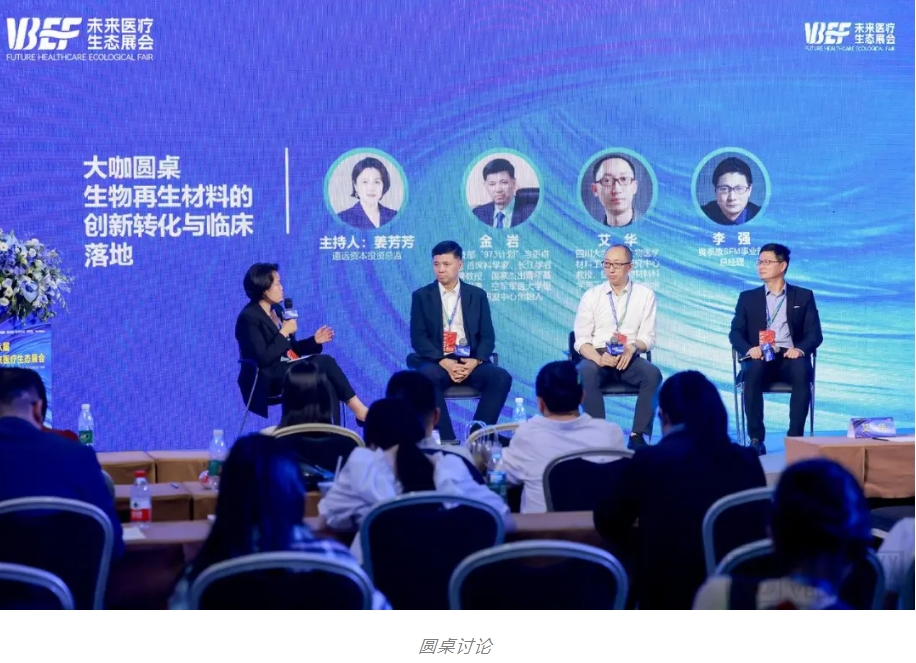隨后,科技部“973計(jì)劃”與重點(diǎn)項(xiàng)目首席科學(xué)家、長江學(xué)者特聘教授、國家杰出青年基金獲得者、空軍軍醫(yī)大學(xué)組織工程研發(fā)中心創(chuàng)始人金巖教授;四川大學(xué)國家生物醫(yī)學(xué)材料工程技術(shù)研究中心教授、國際生物材料科學(xué)與工程聯(lián)合會Fellow艾華教授;奧泰康SFM事業(yè)部總經(jīng)理李強(qiáng)先生以及道遠(yuǎn)資本投資總監(jiān)姜芳芳共同圍繞《生物再生材料的創(chuàng)新轉(zhuǎn)化與臨床落地》這一主題進(jìn)行了分享與探討。