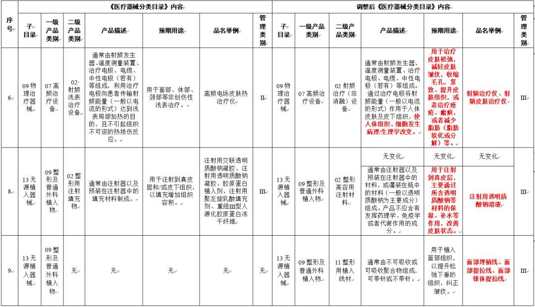 醫(yī)美注射類產品是國家近年來重點監(jiān)管領域,隨著水光針產品的火熱和市場的良莠不齊,產品濫用、超適應癥范圍使用情況增多,國家藥監(jiān)局標管中心出臺政策規(guī)范了對于水光針產品的監(jiān)管標準。2022年3月30日,國家藥監(jiān)局發(fā)布實施《關于調整<醫(yī)療器械分類目錄>部分內容的公告(2022年第30號)》,對部分醫(yī)美產品監(jiān)管類別作出調整,其中明確注射用透明質酸鈉溶液按照III類器械進行監(jiān)管。政策的落地,促使生產廠家積極申報III類醫(yī)療器械注冊證,具有III類醫(yī)療器械注冊證的水光產品有望加速上市。