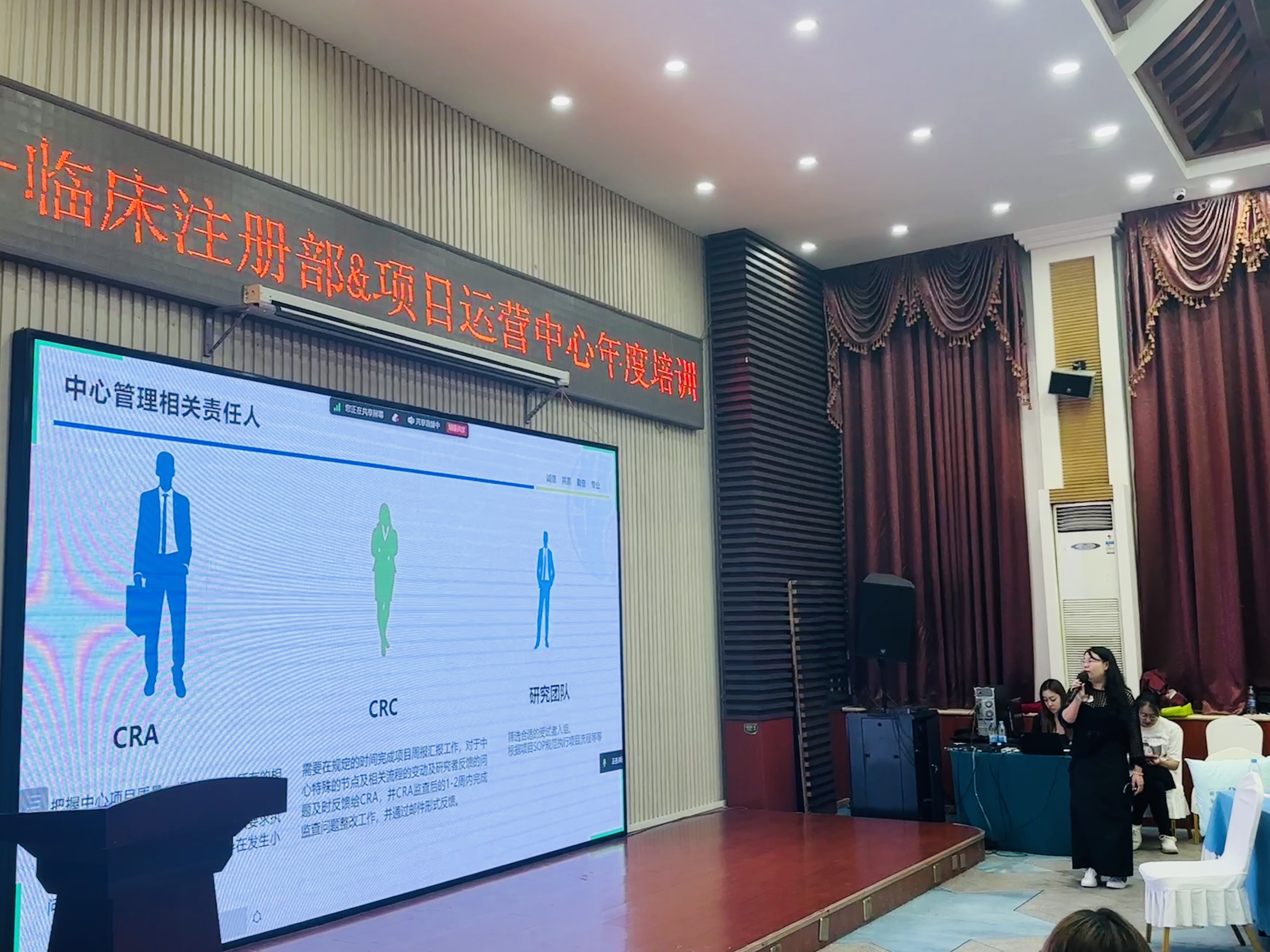 主題分享環(huán)節(jié),由來自臨床的5位講師圍繞“CRA手冊解讀、中心管理與中心績效、受試者全周期管理及重要數(shù)據(jù)指標(biāo)管理、監(jiān)查問題(數(shù)據(jù)清理)和質(zhì)控問題的關(guān)閉能力、相關(guān)方的溝通和協(xié)”五個(gè)主題展開分享。