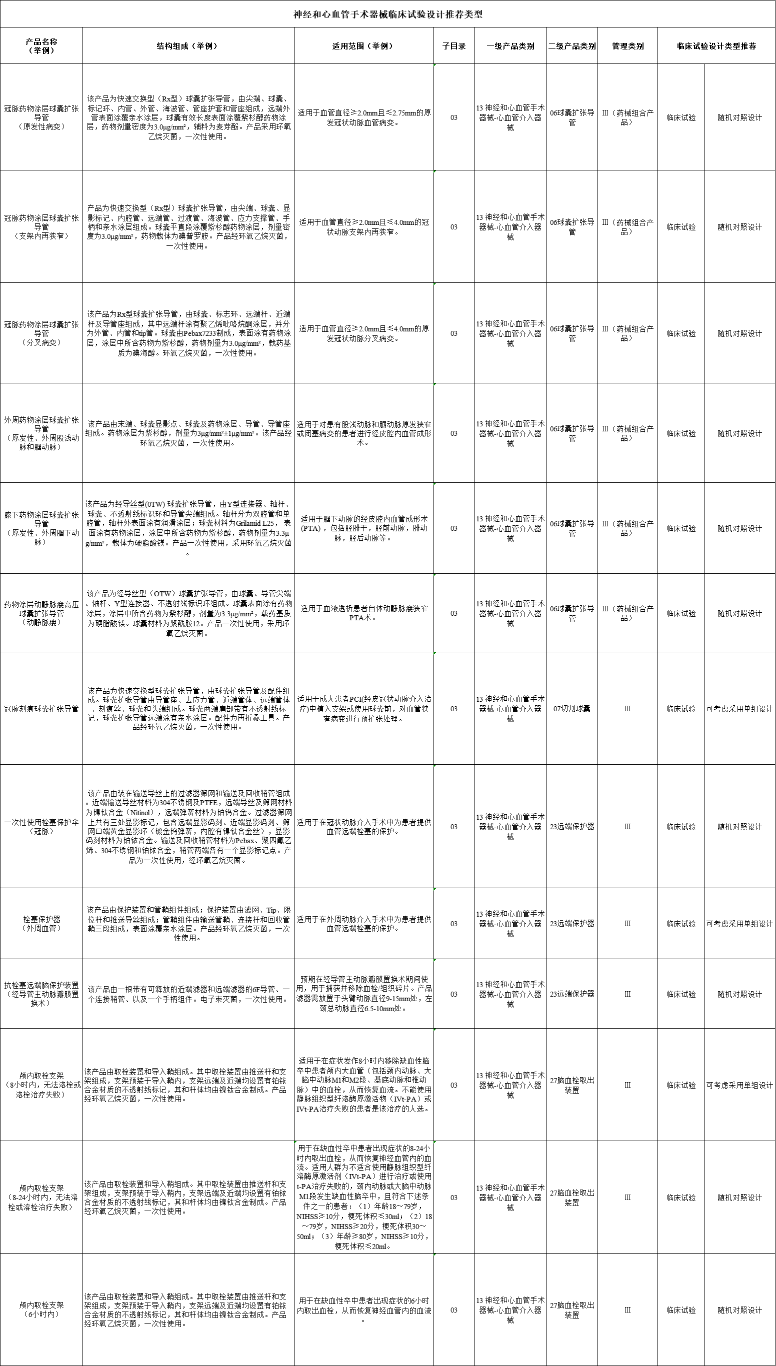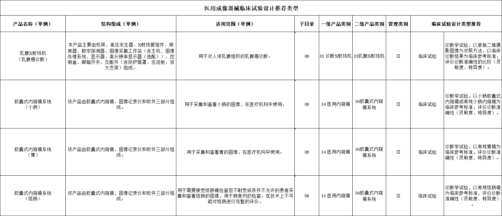 無源植入器械、神經(jīng)和心血管手術(shù)器械、口腔科器械、放射治療器械、醫(yī)用成像器械、醫(yī)用診察和監(jiān)護器械等臨床試驗設(shè)計類型推薦意見