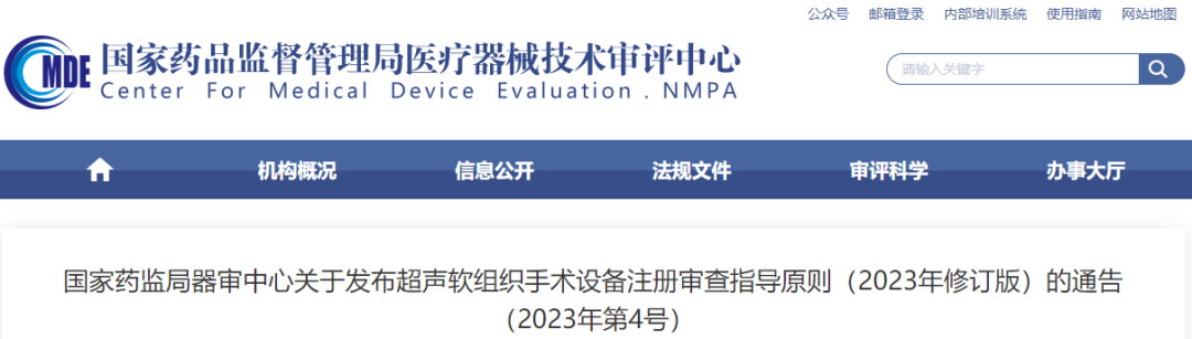 ●2023年3月31日,國家藥監(jiān)局器審中心修訂發(fā)布了《超聲軟組織手術(shù)設(shè)備注冊審查指導(dǎo)原則》(2023年修訂版)。(附件:超聲軟組織手術(shù)設(shè)備注冊審查指導(dǎo)原則(2023年修訂版