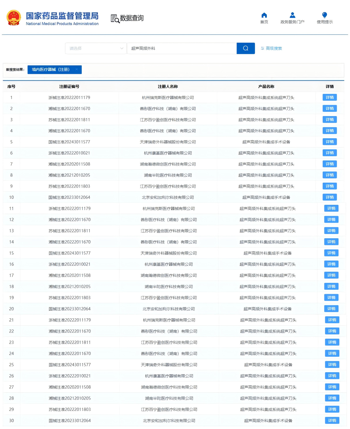 ● 2024年8月,賽諾微醫(yī)療科技自主研發(fā)的一次性使用超聲高頻外科集成手術(shù)設(shè)備超聲刀頭產(chǎn)品獲得NMPA批準(zhǔn)上市,系中國第一把獲批上市的國產(chǎn)7mm超聲刀。