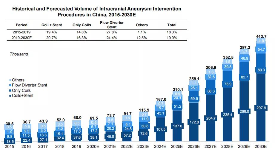 相較于歐美人群,我國顱內(nèi)動脈瘤普遍呈現(xiàn)“瘤體小、載瘤動脈管徑細(xì)”的特點(diǎn),但目前市場上的的動脈瘤栓塞彈簧圈仍以進(jìn)口產(chǎn)品為主,國產(chǎn)替代率尚不足10%,亟需一款適合國人的超柔軟彈簧圈。通橋鳳彈簧圈的上市,填補(bǔ)了這一市場空白。通橋鳳彈簧圈圈體更柔軟,推送系統(tǒng)更柔順,能更好地順應(yīng)瘤體形態(tài),提高手術(shù)安全性和栓塞效果。 同時(shí),通橋鳳彈簧圈采用了機(jī)械解脫的結(jié)構(gòu),與電解脫和水解脫方式相比,解脫過程簡單快速、安全可靠,術(shù)者只需“一折一拉”,即刻解脫,平均解脫時(shí)間小于1秒。 在型號方面,通橋鳳彈簧圈系統(tǒng)擁有十分齊全的規(guī)格型號,包括6個(gè)1mm型號,可以覆蓋多數(shù)復(fù)雜病變,為小動脈瘤栓塞提供更多選擇,為患者和醫(yī)生提供全方位栓塞治療方案。 隨著中國人口老齡化的加劇及國內(nèi)神經(jīng)介入技術(shù)的快速發(fā)展,我國的神經(jīng)介入醫(yī)療器械市場快速增長?!吨袊X卒中防治報(bào)告(2020)》指出,我國顱內(nèi)動脈瘤的檢出率高達(dá)7%,且呈現(xiàn)逐年上升趨勢。根據(jù)弗若斯特沙利文分析,中國顱內(nèi)動脈瘤介入手術(shù)量由2018年的5.2萬臺到2021年7.37萬臺,到2030年將進(jìn)一步增加到44.4萬臺,市場空間巨大。